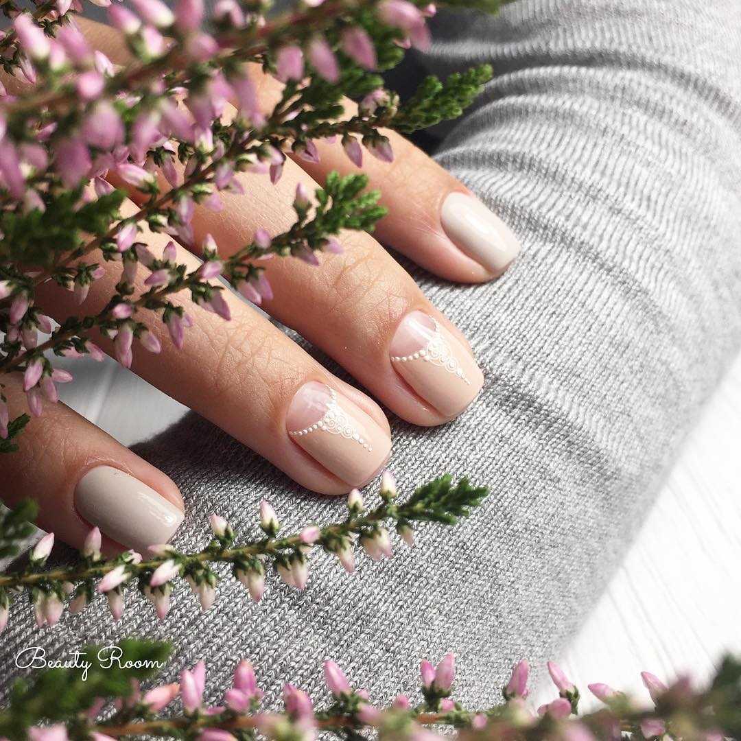 | Короткие ногти | На коротких ногтях уместен лаконичный френч с молочной полосой, по сути, растягивающий ногтевую пластину. Избегайте обилия узоров, ажурных элементов декора и страз |