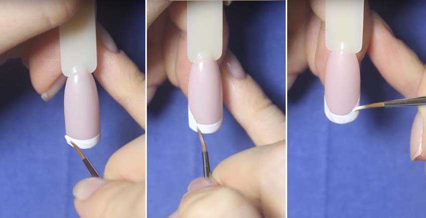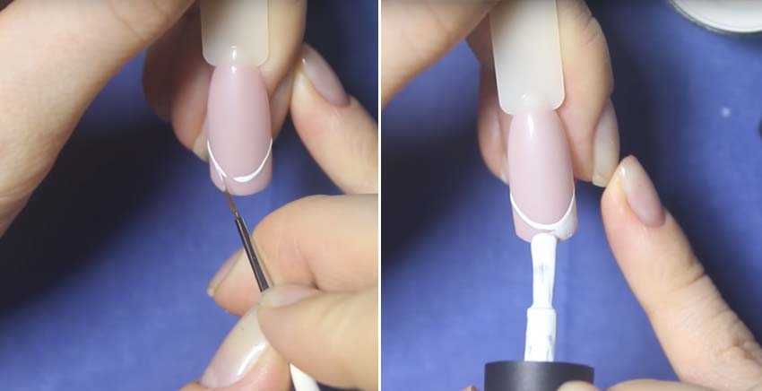 Можно также создать “улыбку” маникюрной кистью, но для этого потребуются некоторые навыки, которые приобретают со временем: