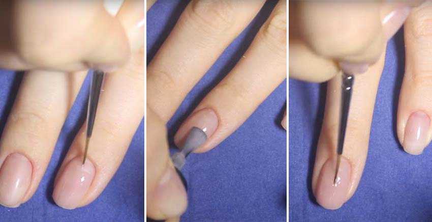 - плоской стороной щетки заклейте конец ногтевой пластины во избежание сколов и трещин;