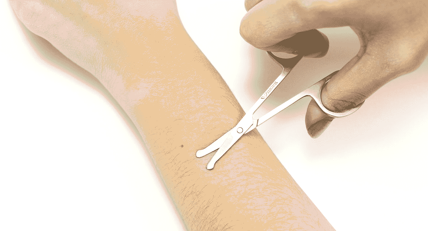 - Хирургический способ удаления вросшего волоска проводится, когда образуется пустула с серозным или гнойным содержимым и имеется обширное воспаление. Такую процедуру может провести хирург в обычной поликлинике. Хирургический метод удаления вросшего волоса заключается во вскрытии гнойника, санации раны и удаление волоса. Рана обрабатывается антисептиком и накладывается повязка или бактерицидный лейкопластырь.