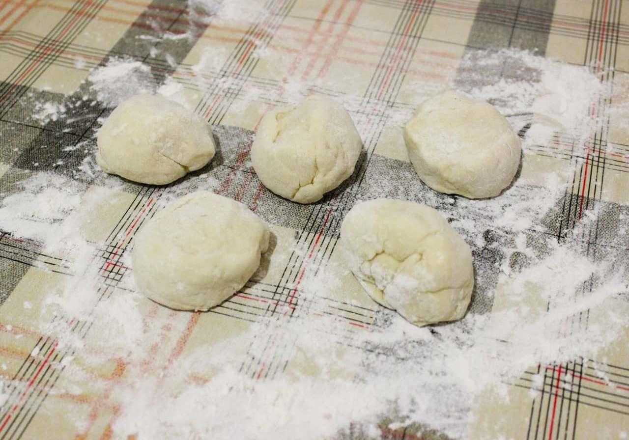 Теперь процесс лепки. Тесто делится на множество миниатюрных шариков. Дополнительная порция муки используется по надобности.