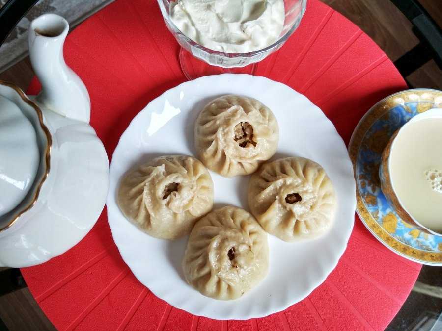 Обычно к буузам подается чай с молоком и соевый соус или сметана.