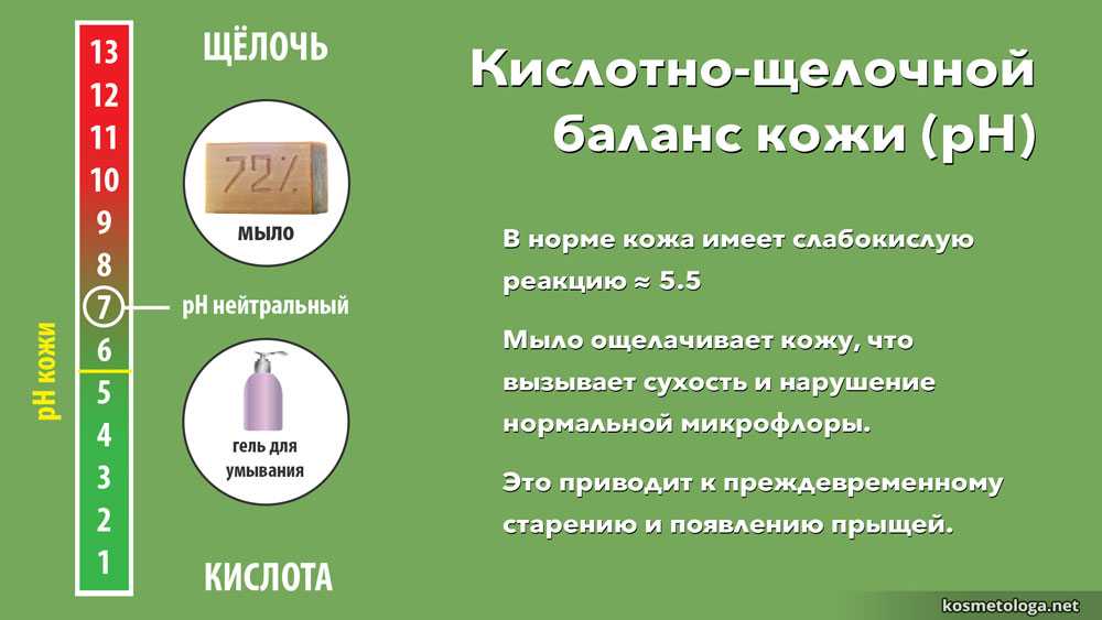 А мыло – это одна сплошная щелочь. То есть умывание с мылом постоянно ощелачивает кожу и нарушает ее естественный pH и нормальную микрофлору.