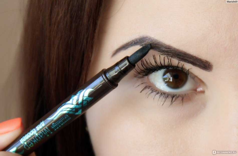 Маркеры с наконечниками, напоминающими канцелярский фломастер, больше подходят модницам с густыми, широкими черного окраса бровями. Более прозрачная текстура на таких бровях просто затеряется и будет незаметна. Маркер предназначен для прорисовки плотных выразительных линий.