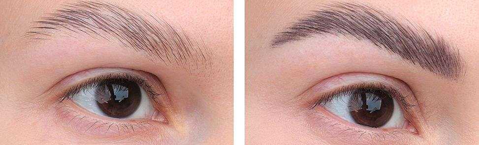 Перед использованием лайнера область нужно очистить мицеллярной водой. При необходимости делается коррекция дуг, затем их требуется расчесать. Прокрашивать дуги нужно с кончика тонкими штрихами по направлению роста. Основание брови требуется затонировать, но не нужно слишком четко прорисовывать основание.