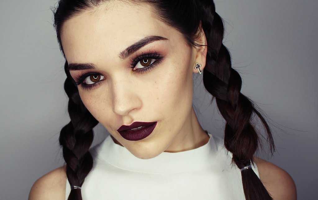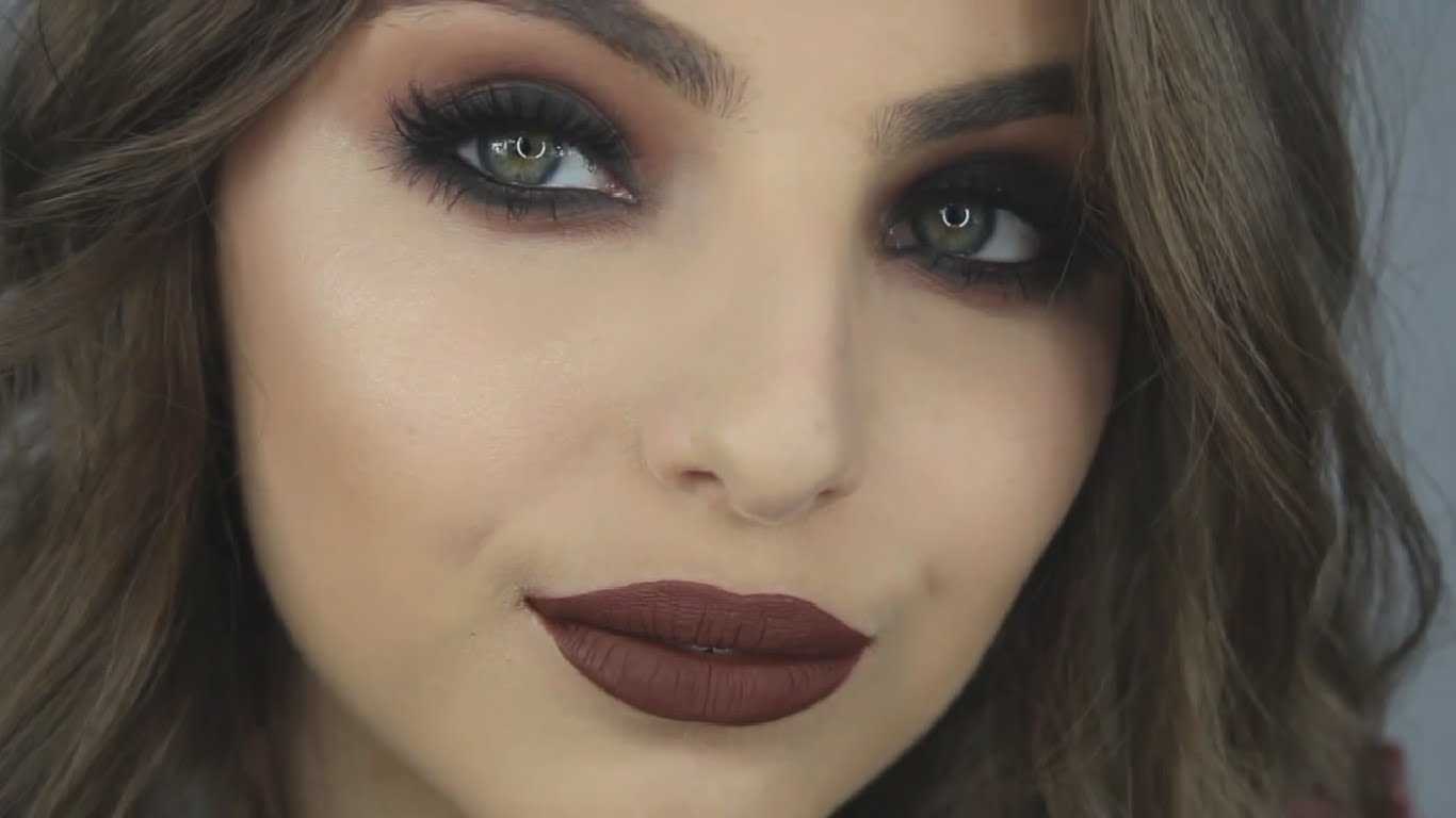 - комбинация с матовыми бордовыми тенями, нанесенными по технике smoky eyes;