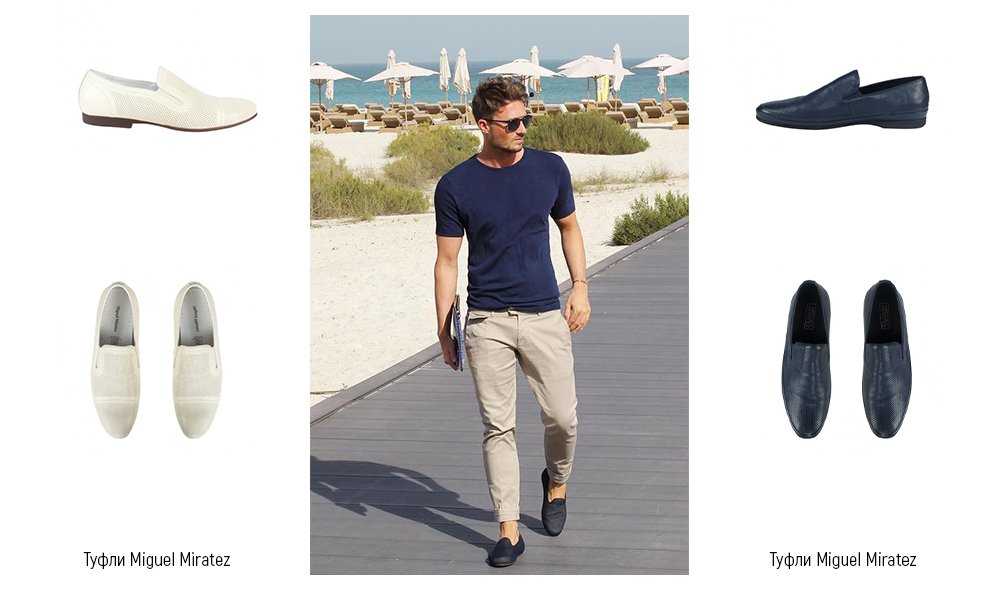 Это одна из самых комфортных моделей для лета. Изначально их использовали индейцы, а в 20 веке мокасины начали носить богатые итальянцы. Сейчас мужчины носят такую обувь из-за ее универсальности. Для лета будут актуальными стандартные белые мокасины. Они подойдут для прогулок, неформальных мероприятий. Для праздника можете выбрать яркую красную обувь с темными джинсами и светлым пиджаком. Образ добавит свежести и элегантности.