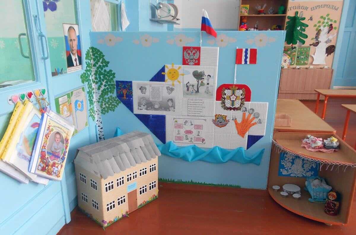 - Патриотический уголок. Тут обязательно должна присутствовать символика государства, патриотические стихотворения и т.д.