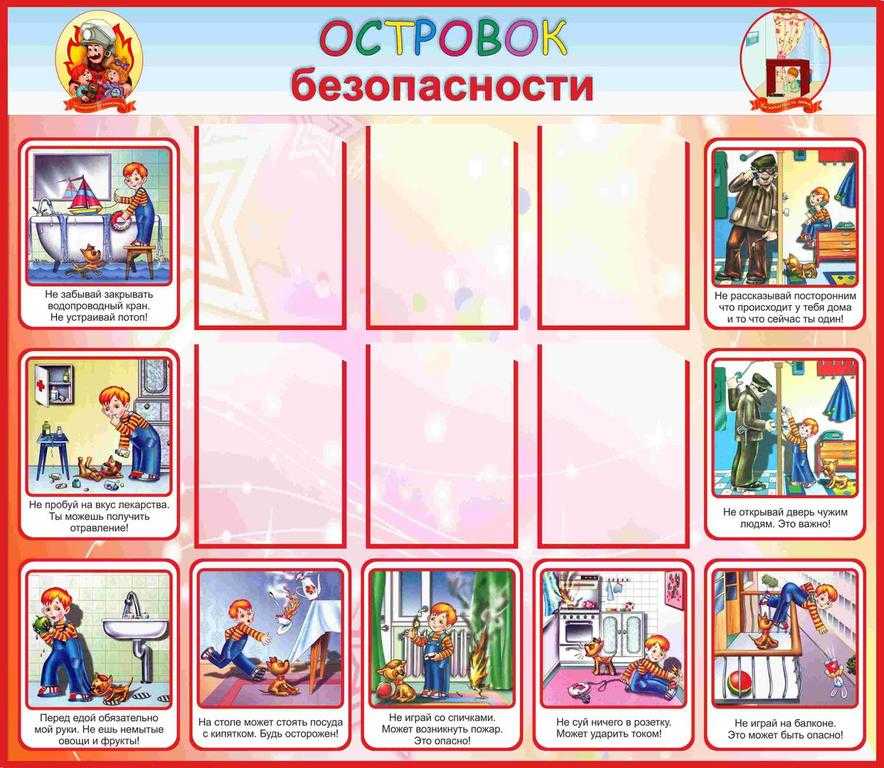 Для оформления стенда используют цветные шаблоны с зонами для размещения важных рубрик по безопасности: