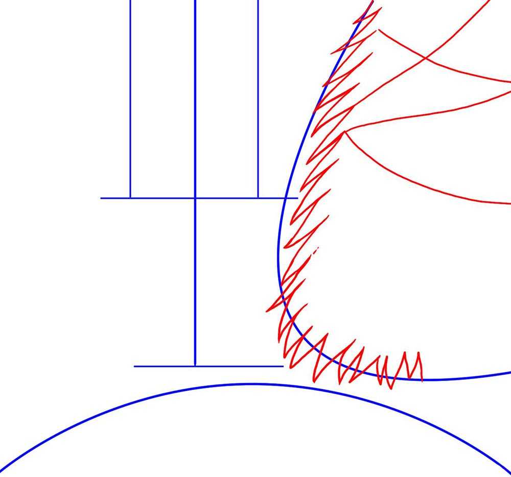 Шаг 2 Теперь начнем набрасывать длинные иголки нашей елочки. Далее проведем линии крест-накрест, как указано на рисунке.