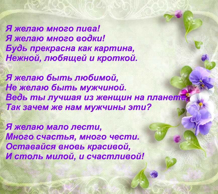 Будь желанной и любимой, Доброй, радостной, прекрасной. Как всегда неотразимой, Чуткой и такой же классной