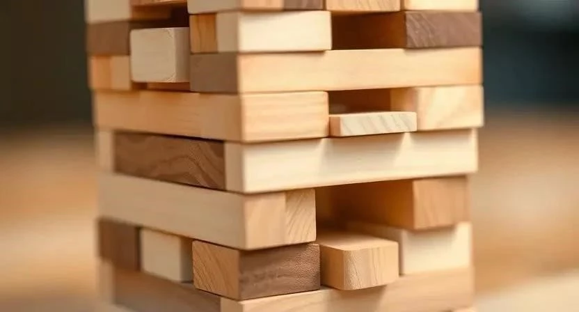 1. Дженга: Игроки по очереди вытаскивают бруски из башни, стараясь не обрушить ее.