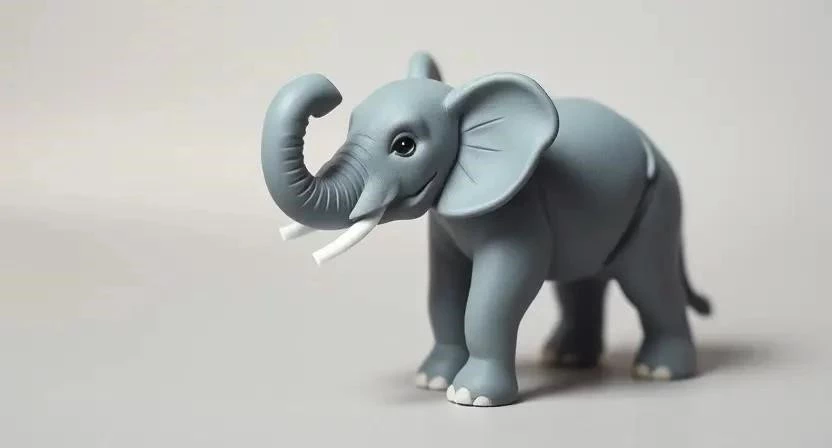 - Слон: Скатайте туловище, добавьте большой хобот и большие уши.