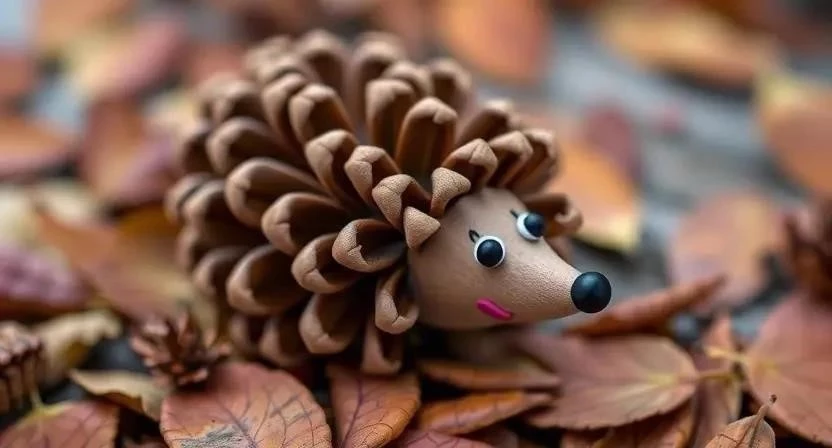 - Ежик из шишки: Возьмите шишку, приклейте к ней мордочку из фетра или пластилина, сделайте глазки из бусинок и носик из черной краски.