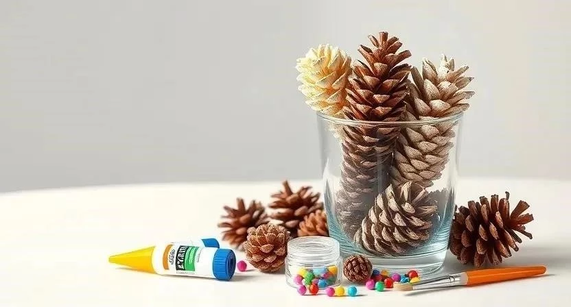 - Шишки в вазе: Наполните вазу шишками и украсьте ее лентами или другими декоративными элементами.
