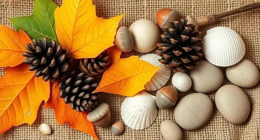 - Природные материалы: Поделки из листьев, шишек, желудей, ракушек. Природные материалы дарят возможность почувствовать себя ближе к природе. Можно создавать красивые композиции из листьев, шишек, желудей и ракушек.