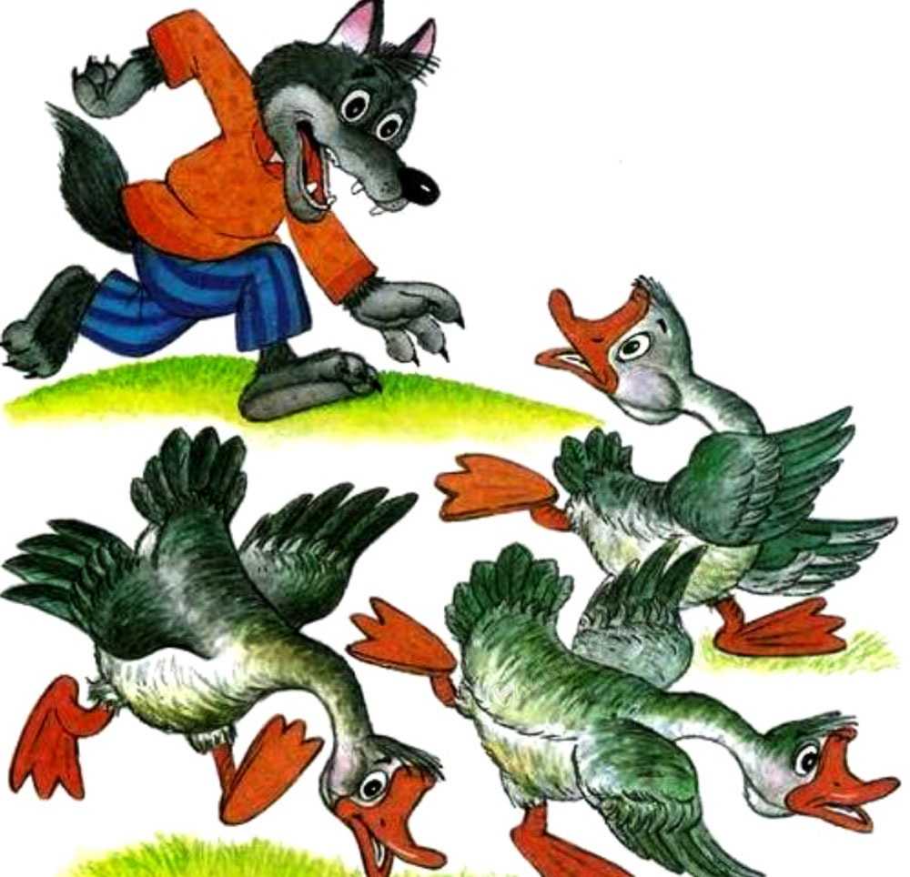 - Гуси «прилетают» домой, не попавшись волку, волк ловит гусей.