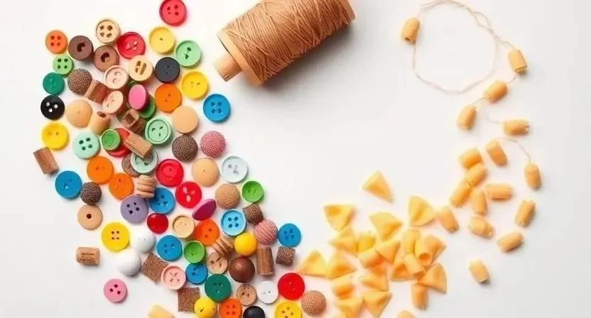 - Пуговицы: Нанизывание пуговиц на нитку, сортировка по цвету и размеру.