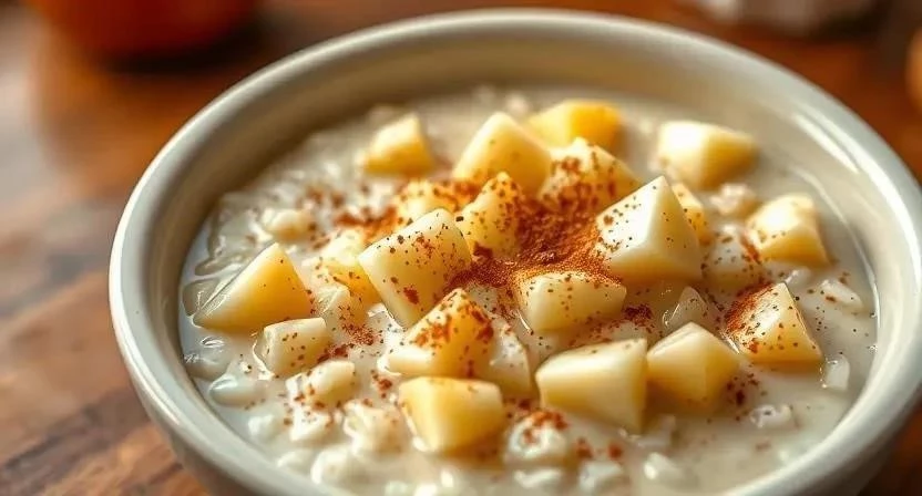 Ингредиенты: рис — 2 ст.л., вода — 200 мл, яблоко — 1 шт., сахар — 1 ч.л. Время приготовления: 20 минут. Калорийность: 150 ккал. Сложность: Легко.