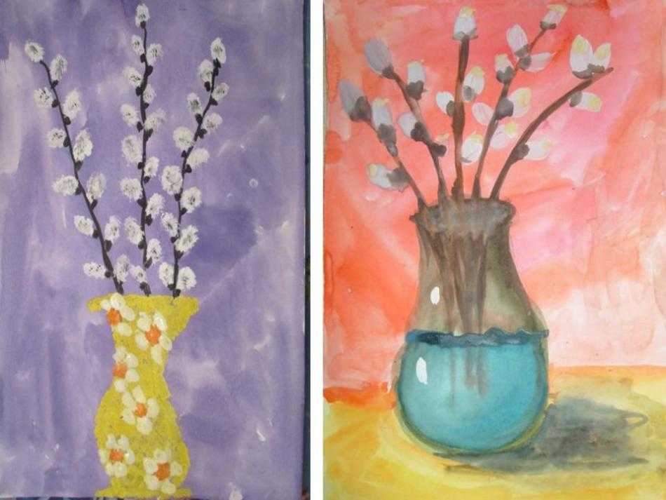 Как нарисовать вербу дерево карандашом и гуашью поэтапно?