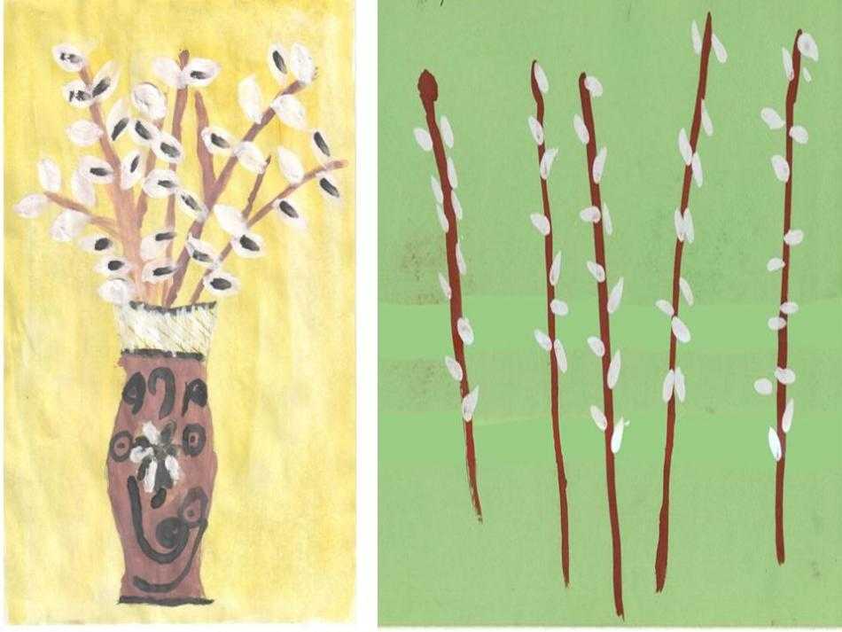И несложным заданием в игровой форме станет для любого малыша красиво изобразить веточку вербы или цветы подснежники.