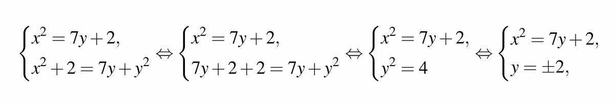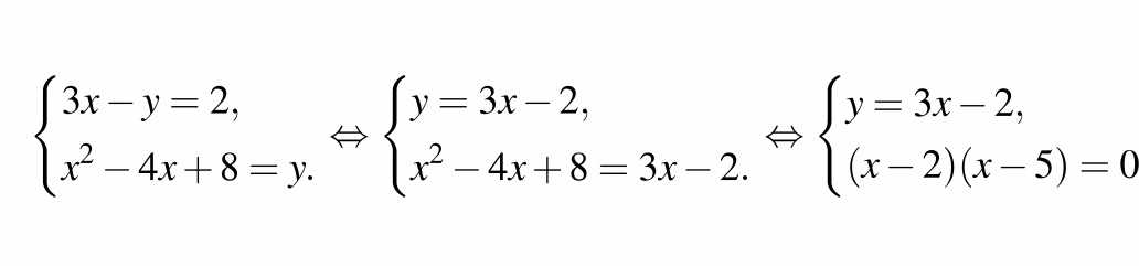 Решение. Выражая x через y из второго уравнения системы (7) и подставляя полученное выражение вместо x в первое уравнение системы (7), получим