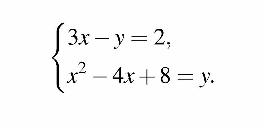 Из самого названия следует, что алгоритм требует что-то подставлять. Ниже представлена система, где нужно найти значения x и y.