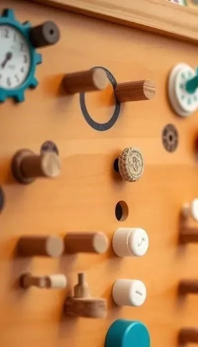 - Бизиборд Kiddieland: Интерактивная панель с различными замками, кнопками и переключателями. Стимулирует сенсорное развитие и мелкую моторику. Цена: около 2000 рублей.