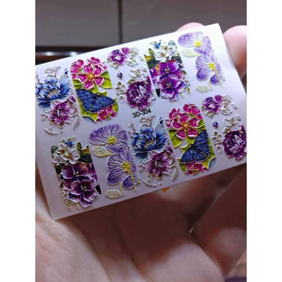 Такие варианты изготавливают на клеевой и водной основе. Имеют выпуклые детали, которые создают объемность изображения и никак не помешают в быту, когда будут нанесены на ваши ногти. Красивый рельеф смотрится оригинально и необычно, только в процессе прикрепления нужно быть осторожным, чтобы не создать ненужных складок по бокам.