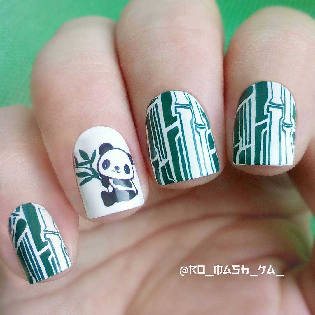 #2 Маникюр с пандой и бамбуком