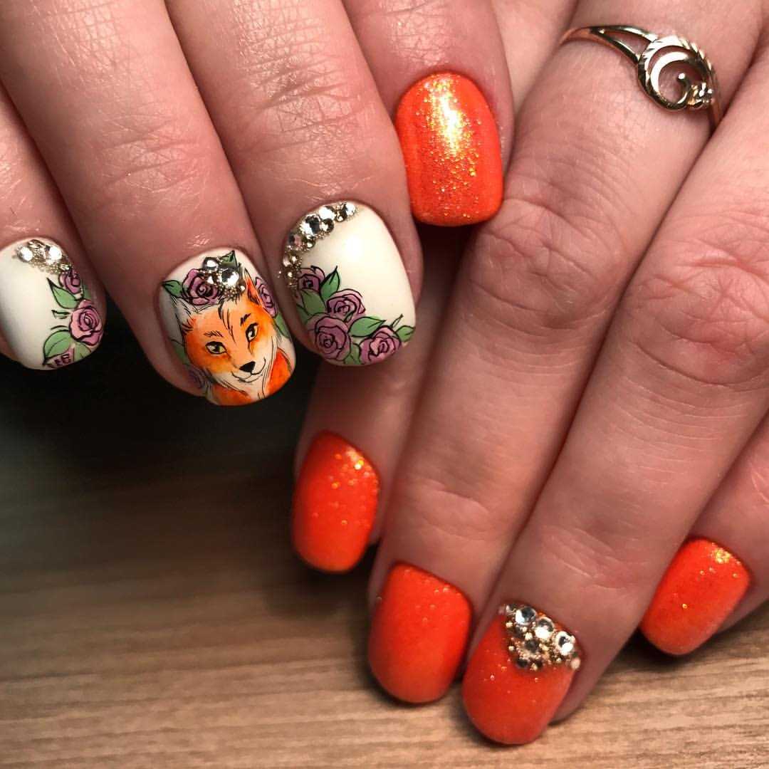 Частыми «гостями» маникюра с животными являются лисы. Они привлекательно смотрятся на ногтях, выделяются на общем фоне. В мифологии лисы символизируют своенравное животное, очень острожное и недоверчивое. Лисы не обделены хитростью, как и женщины.