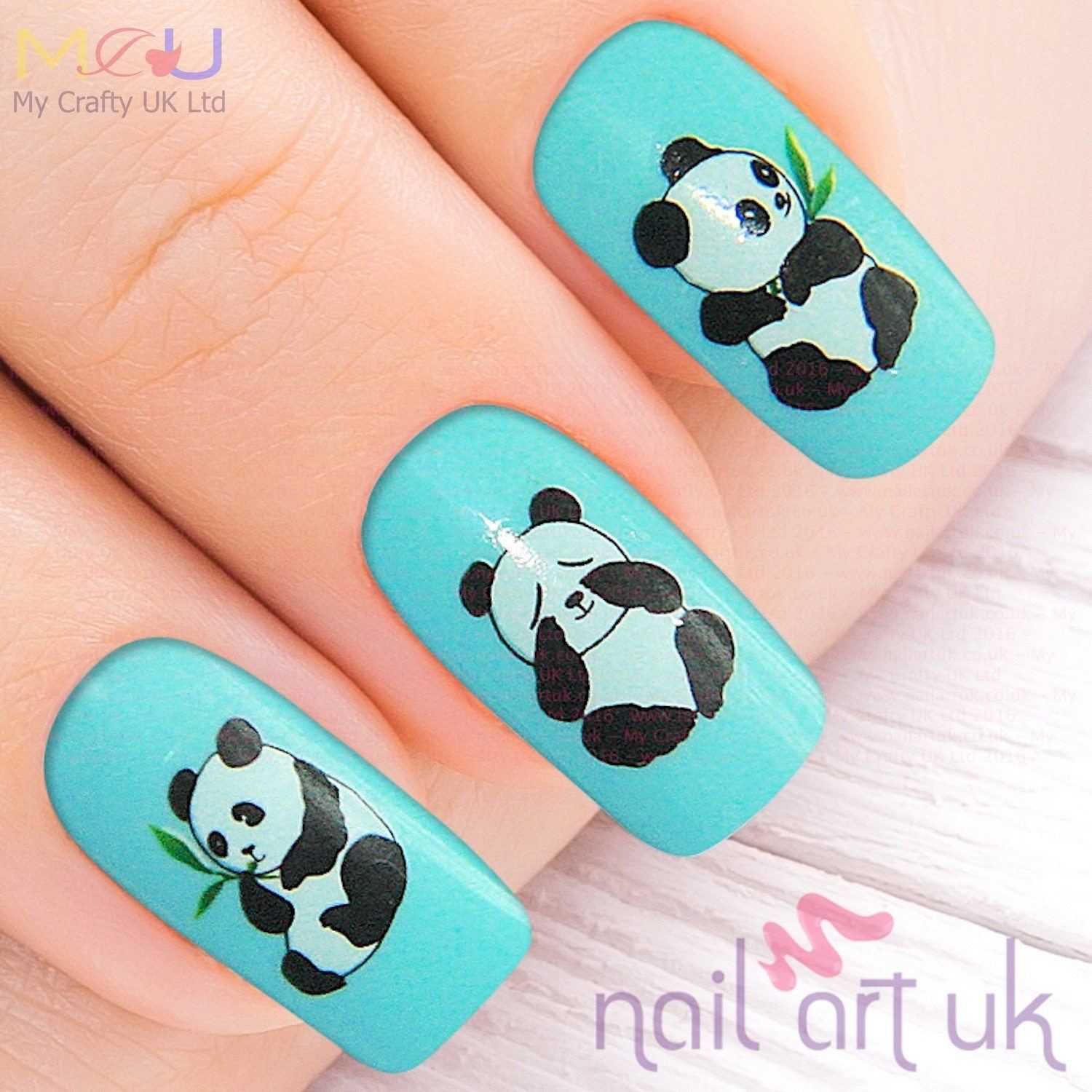Маникюр с пандой с помощью слайдеров