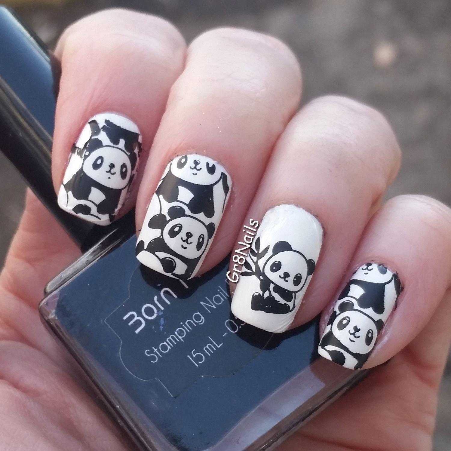 #1 Маникюр с пандой в черно-белом цвете