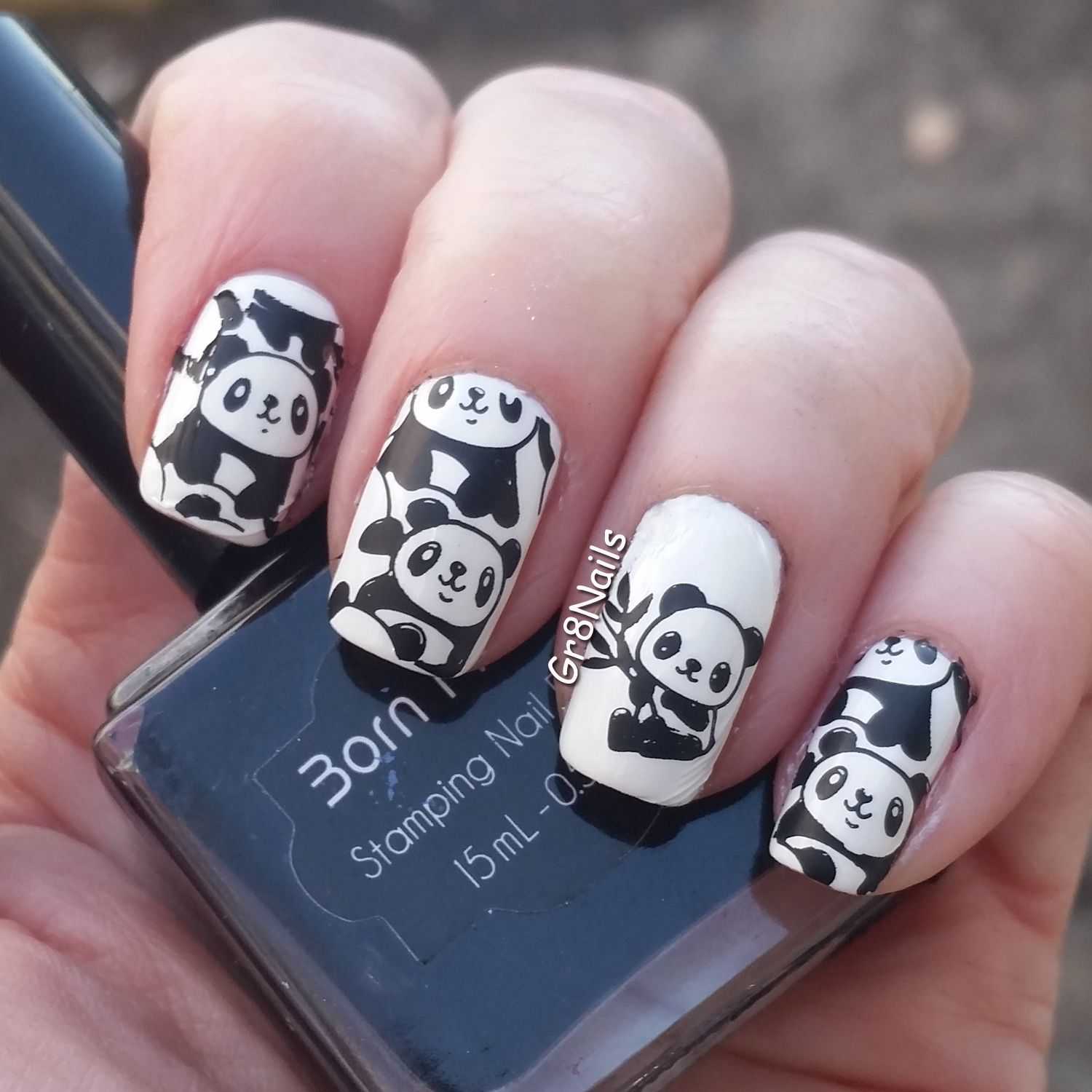 Маникюр с пандой с помощью маникюрной кисти