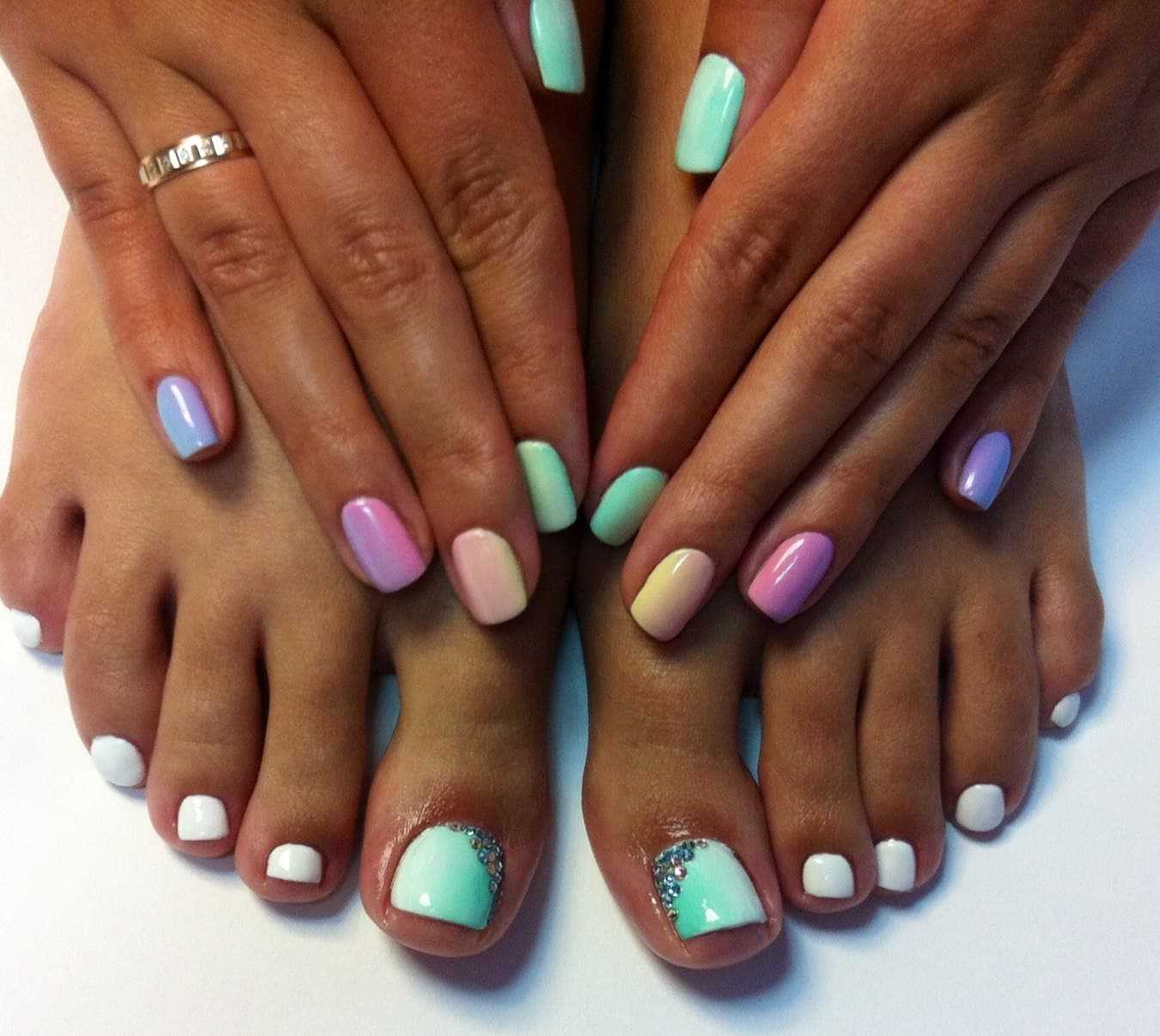 Разноцветный педикюр