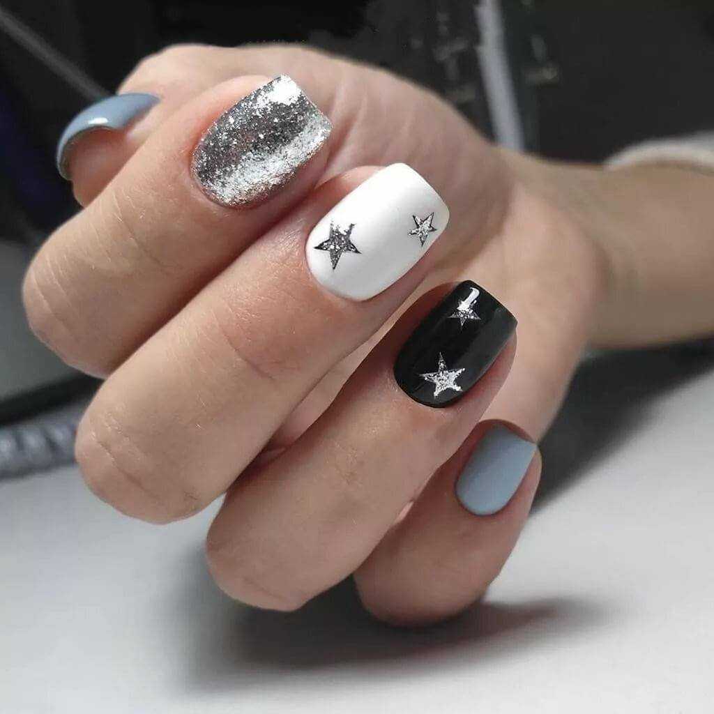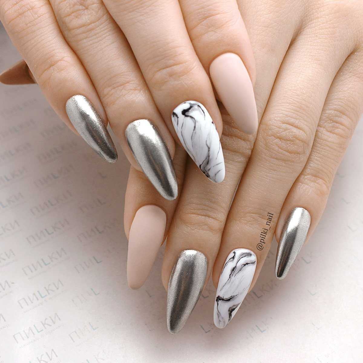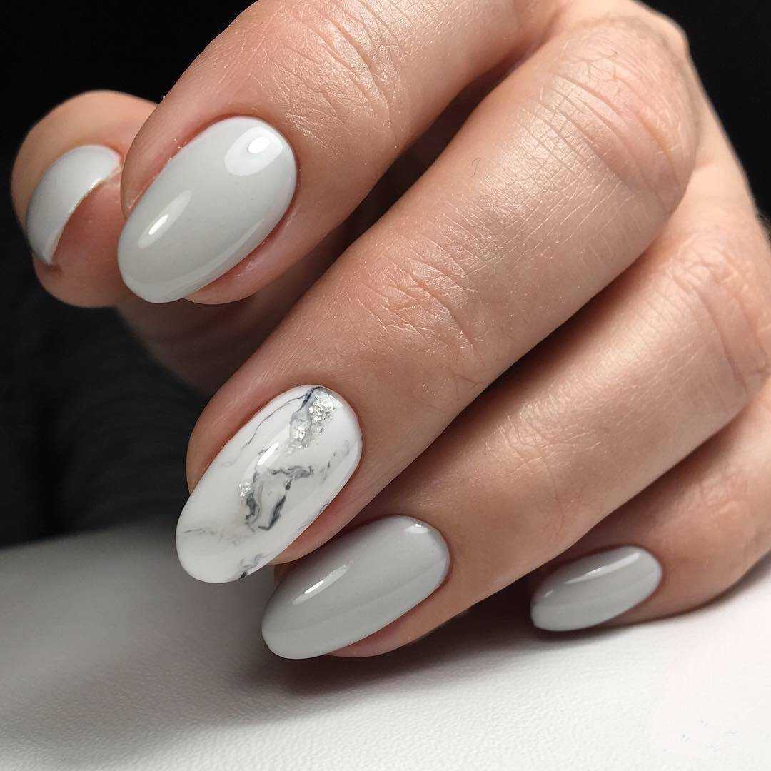 Маникюрный дуэт серого и чёрного лака смотрится не менее привлекательно, чем композиции с другими оттенками. Чёрный при этом может использоваться как для полного покрытия ногтевых пластин, так и для прорисовки деталей и выделения некоторых областей ноготка. В качестве примера, мы предлагаем покрыть два-три ноготка чёрным цветом, а на остальные нанести выбранный серый тон и украсить лунки при помощи блёсток. Не менее интересно смотрятся на светло-сером фоне чёрные вуалевые рисунки и всевозможные завитки с блестящей прорисовкой, геометрические изображения и флористические фрагменты в стиле минимализм. Модный чёрно-серый тандем лаков – это анималистика, мрамор, маникюр с рамкой, абстрактные потёки и «острова» на прозрачной основе. Какой из дизайнов украсит ваши ноготки, зависит только от вашего предпочтения.