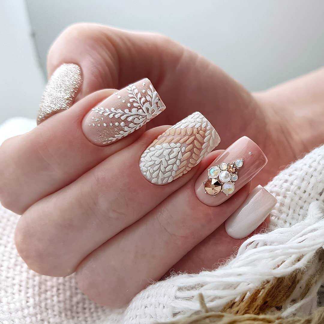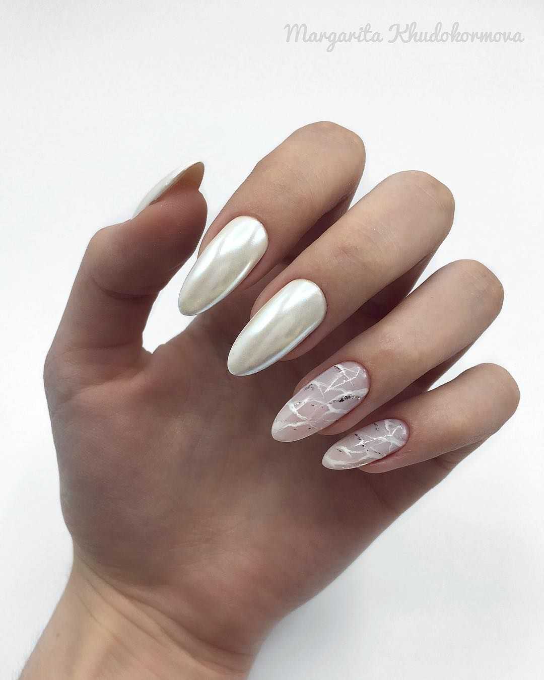 - Декор в технике «вуаль» станет интересным решением в качестве свадебного маникюра.