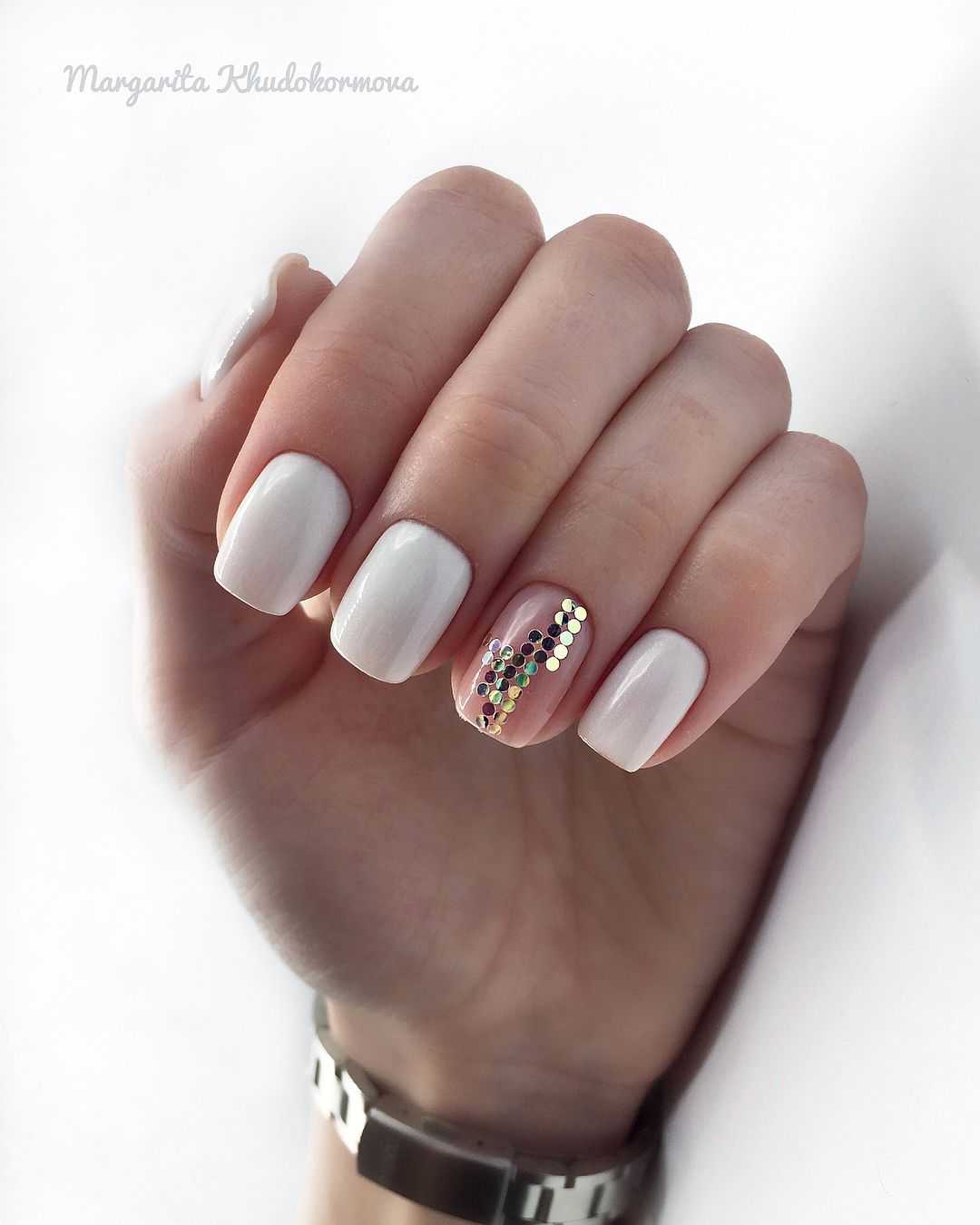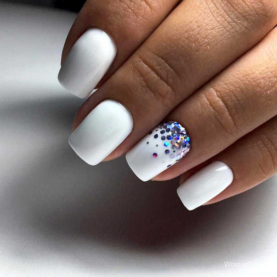 Белый маникюр с блестками – это отличный способ выделиться среди остальных. Данный маникюр прекрасно подходит для любых событий и наполнит образ девушки нежностью, эффектностью и изящностью. Такой дизайн можно смело применять в любое время года и даже превращать в тематический маникюр. Просмотрев далее фото, девушкам будет значительно легче выбрать для себя дизайн стильного и модного белого маникюра с блестками.