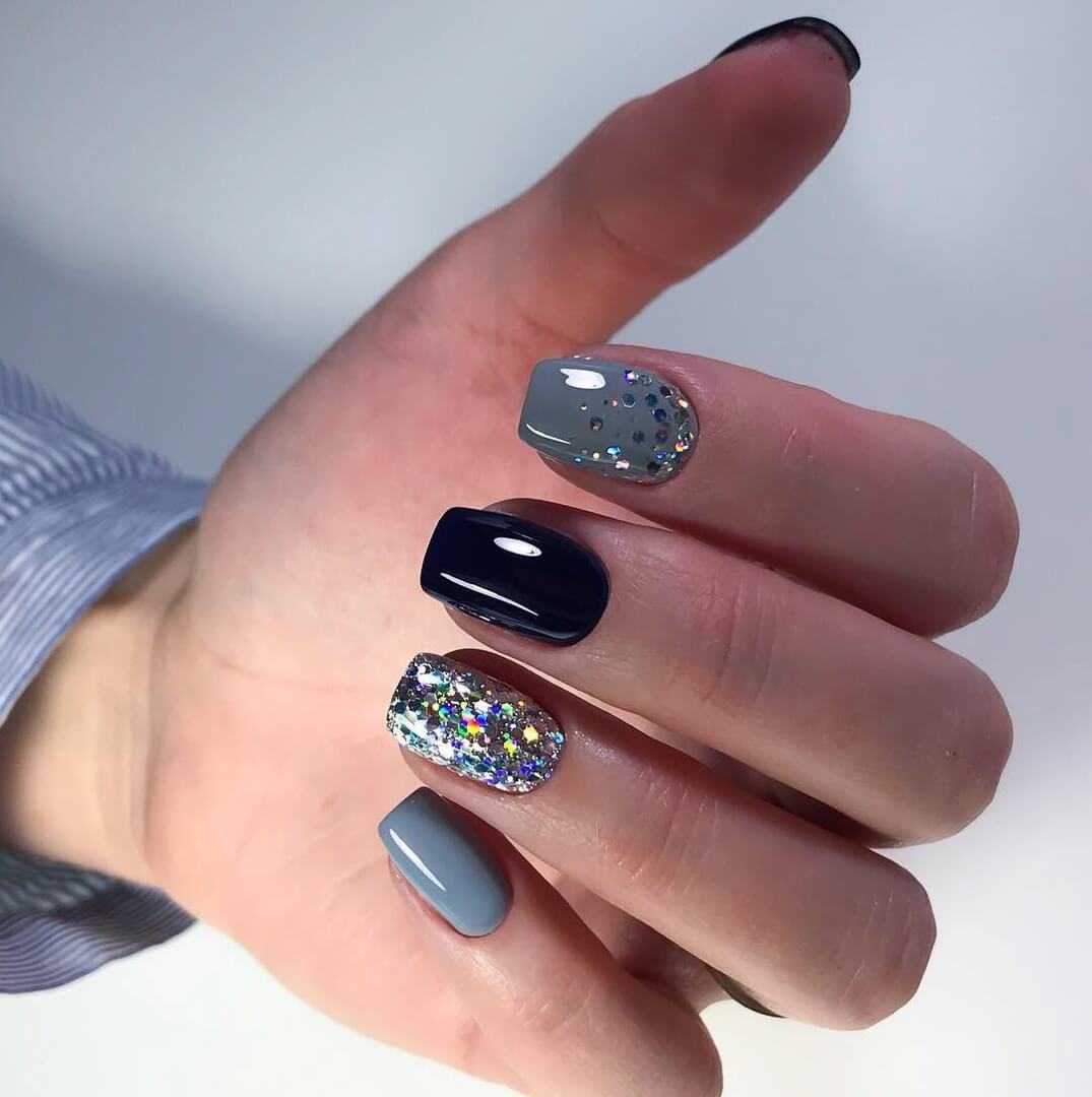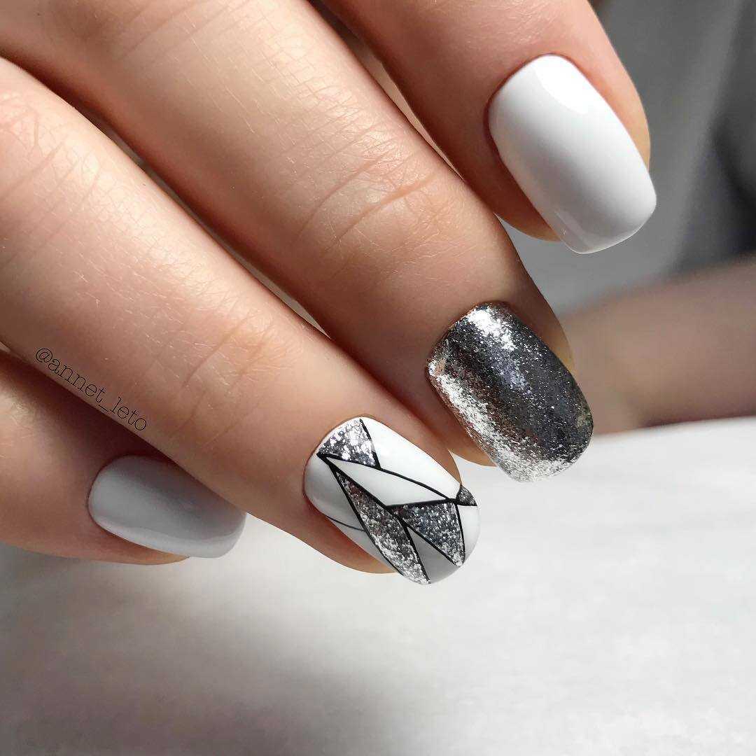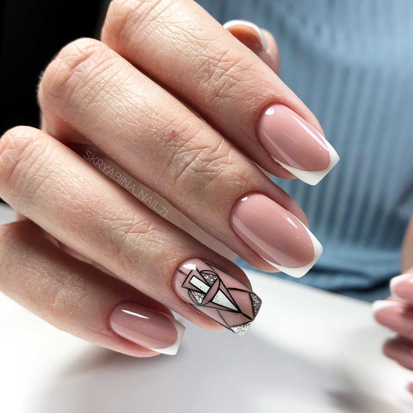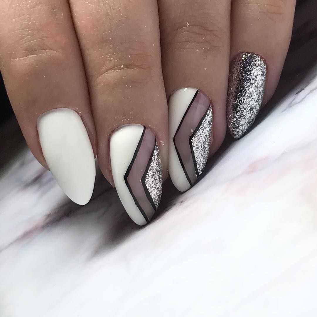Не менее прекрасно смотрится геометрический и абстрактный дизайн. Вместе с блестками он буквально преображает на глазах и смотрится совершенно по-новому. Но обратите внимание на то, что декора не должно быть слишком много. Ведь главное, чтобы маникюр смотрелся гармонично.