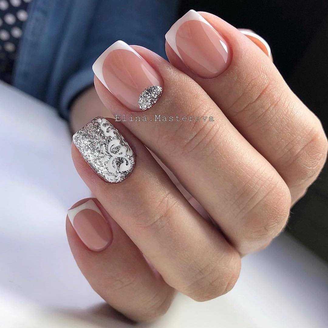 Как и всегда, французский маникюр достаточно актуальный и востребованный. Причем речь идет не только о классическом варианте, но и о современных решениях. Не слишком крупные рисунки прекрасно смотрятся на нескольких ноготках. В основном среди них цветочные и флористические мотивы, геометрия, абстракция и вензеля. В летнем сезоне френч часто дополняют изображения фруктов, ягод и бабочек. Поскольку данный вид дизайна часто делают на свадьбу, то рисунок также должен быть тематическим. Яркости маникюру придают блестки, но интенсивность зависит от выбранного варианта и плотности нанесения. Шиммер, глиттер и конфетти дают совершенно разный эффект на ноготках.