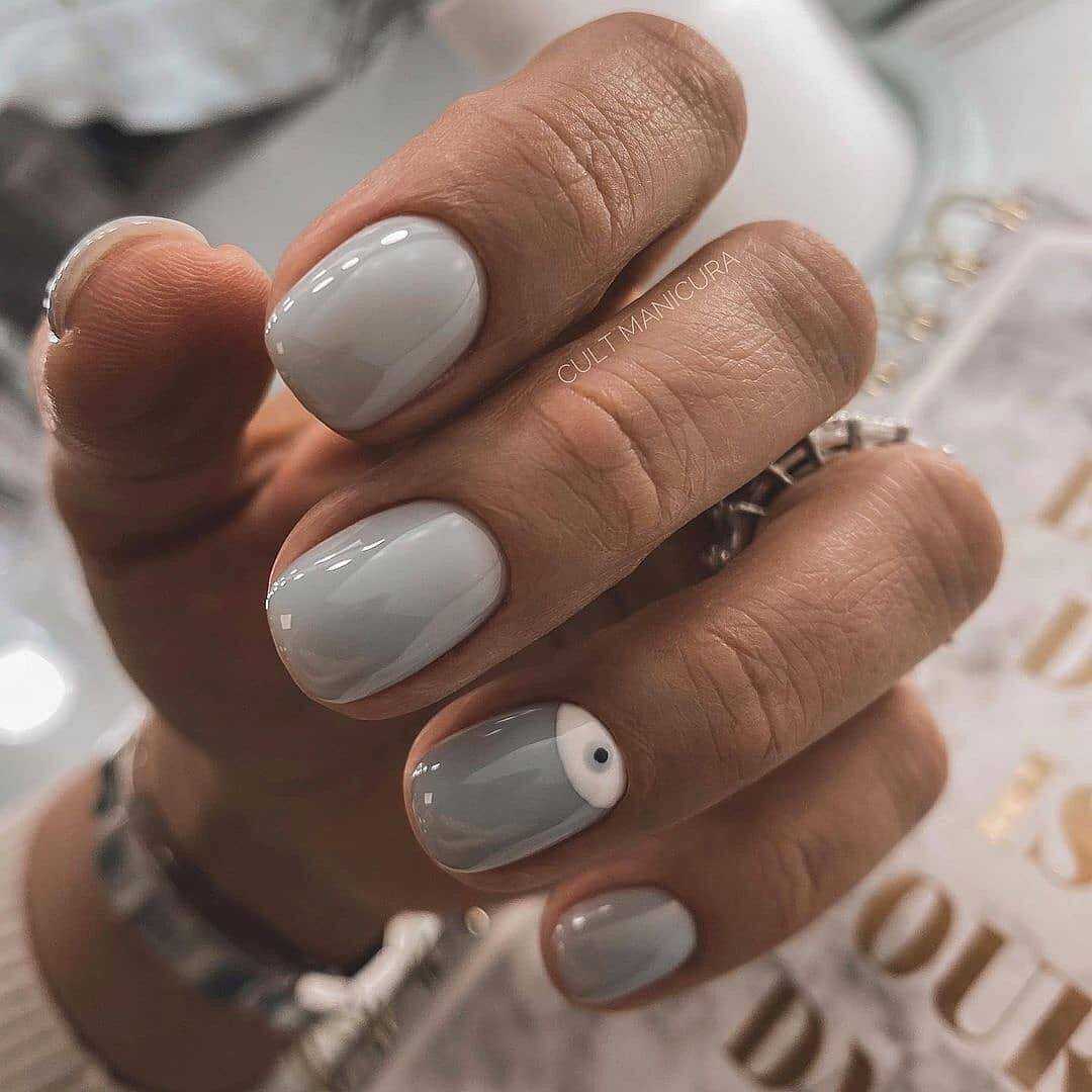 К модным цветам ногтей можно отнести и все оттенки серого, которые, как и черный, станут прекрасным фоном для изысканных украшений.