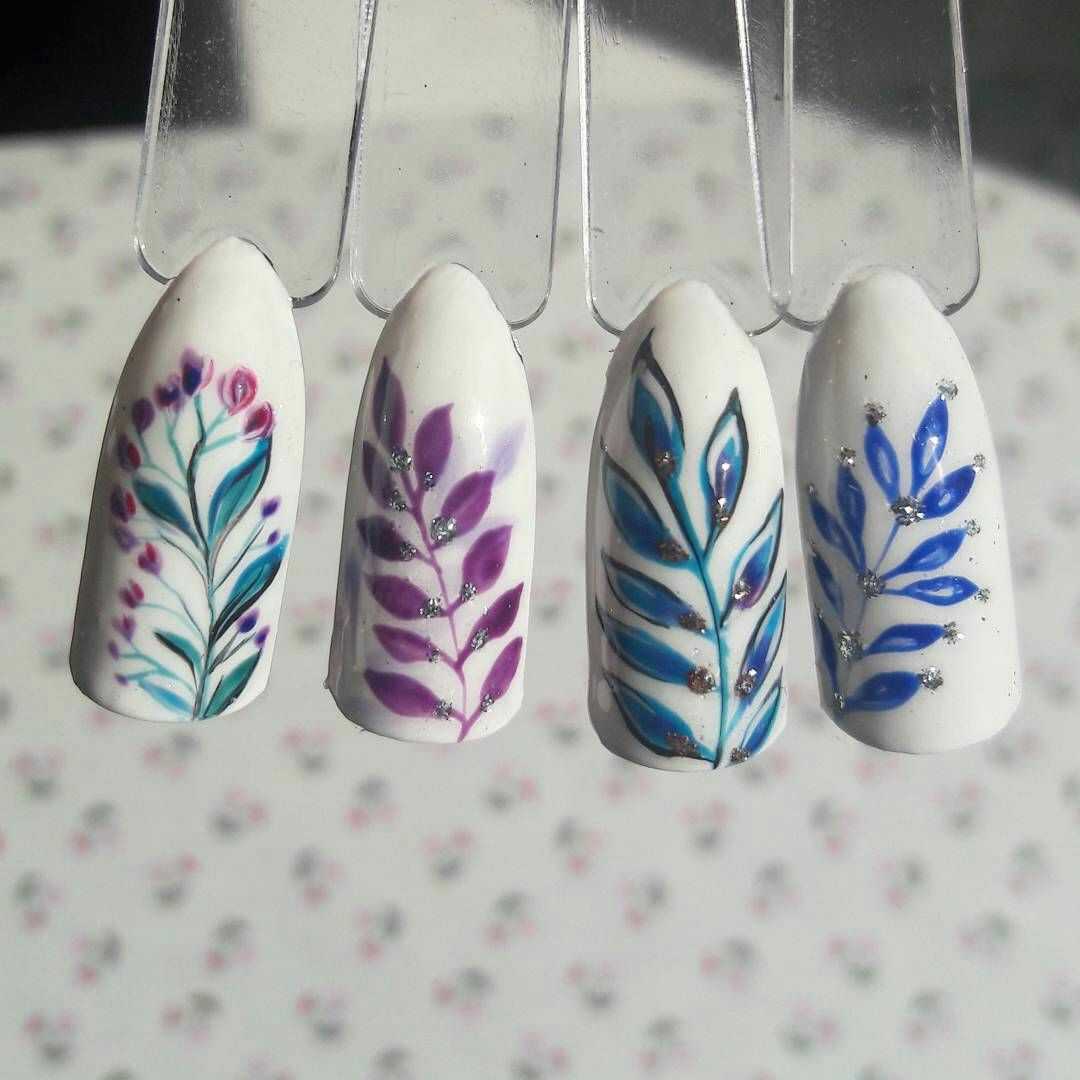 Простой и незамысловатый отлично подходит для весеннего маникюра. Выполняется он легко даже в домашних условиях, особой сноровки и мастерства не требуется. Главное выбрать кисть с самым тонким ворсом и хорошую гель-краску, чтоб не текла. При желании дизайн можно усложнить и использовать акриловый декоративный песок или блестки.