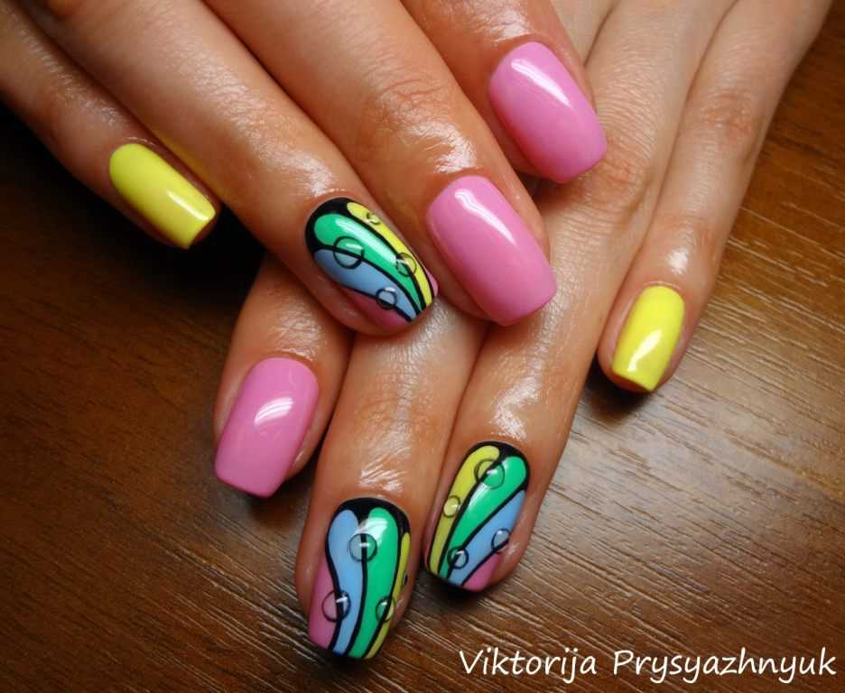 Один из самых популярных трендов в мире маникюра. А черный и желтый цвета всегда притягивают взгляды.