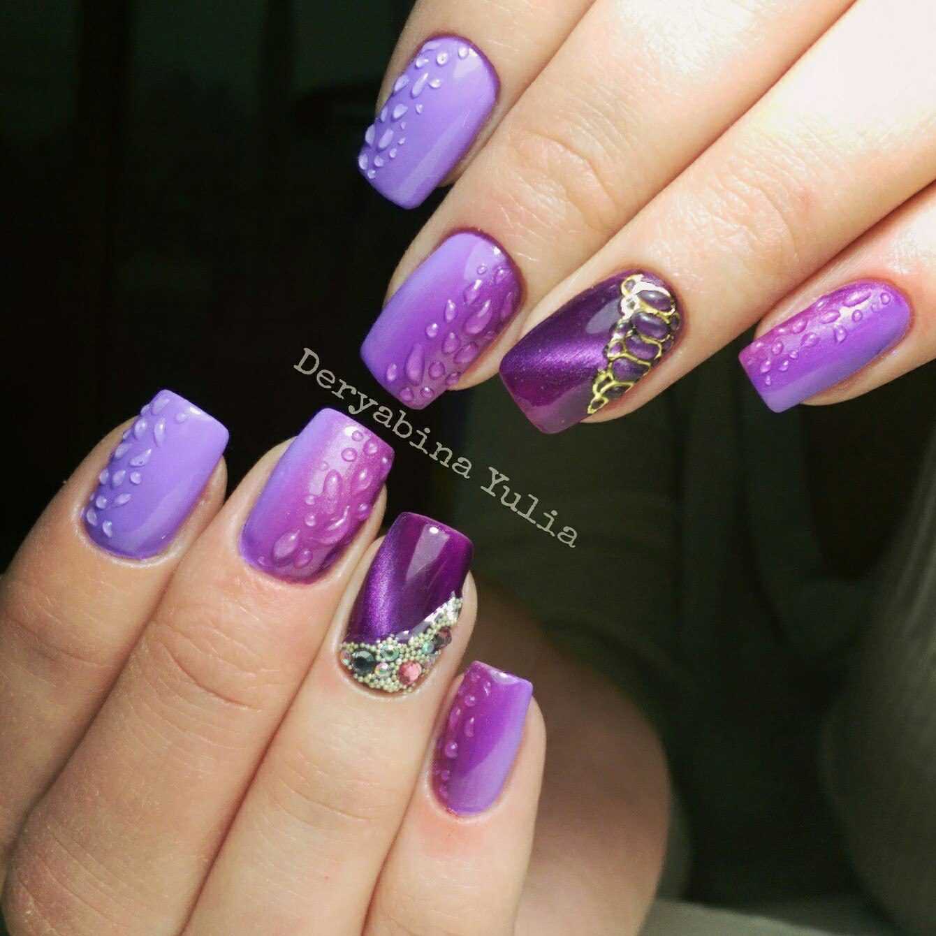 Эффектным дополнением весеннего маникюра станут маленькие капли «росы» или «дождя», которые покрывают цветы на ваших ноготках. Сделать подобное украшение невероятно легко. Используйте для этого прозрачный топ. Нанесите небольшие капельки с помощью дотса и просушите их под УФ-лампой. Изящным и женственным получится маникюр, где капли выполнены с помощью мелких страз.