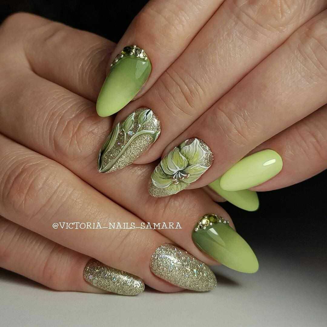 Вот уже второй год в моде зеленые оттенки гель-лака. Для маникюра на весну лучше использовать чистые и сочные оттенки зелени.