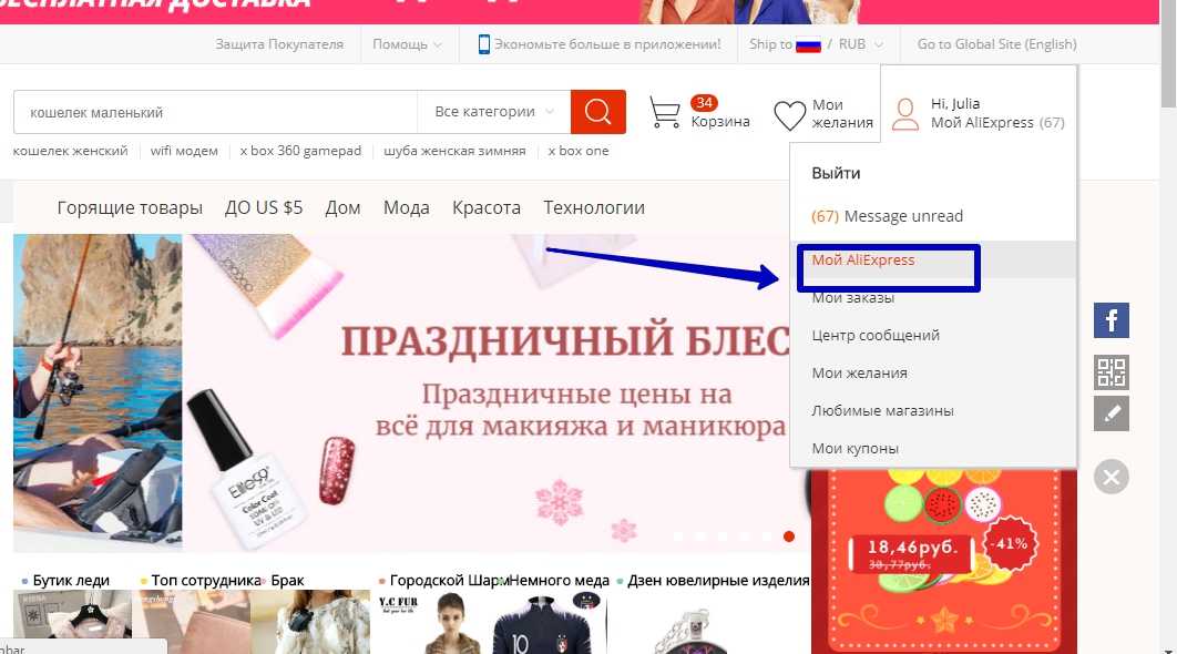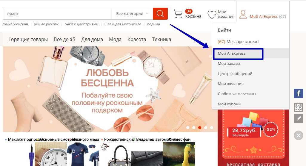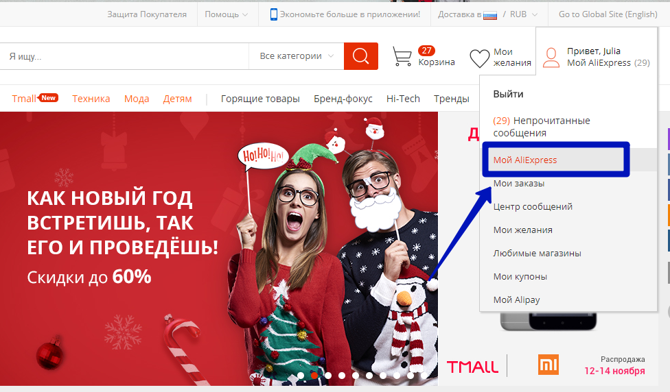 - Авторизоваться в собственной учетной записи на сайте Алиэкспресс.