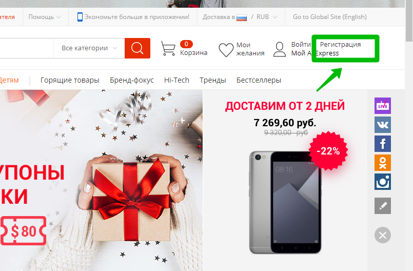 Как зарегистрироваться на Aliexpress для покупки товаров с телефона
