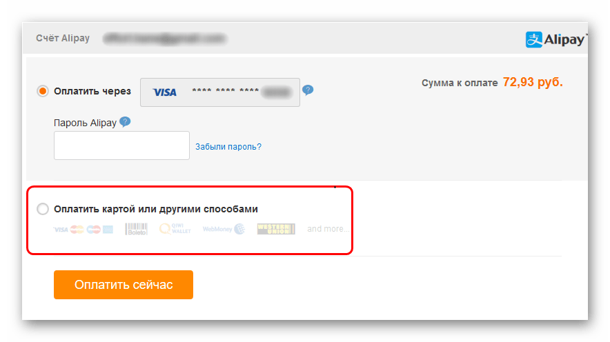 Первый способ — это система платежей Alipay. Данный сервис является специальной разработкой AliBaba.com для совершения операций с денежными средствами. Регистрация аккаунта и присоединение к нему своих банковских карт занимает отдельное время. Однако это предоставляет новые меры безопасности — работу с финансами теперь начинает производить и Alipay, так что надежность выплат значительно возрастает. Этот сервис лучше всего подходит пользователям, которые активно заказывают на Али, а также на крупные суммы.