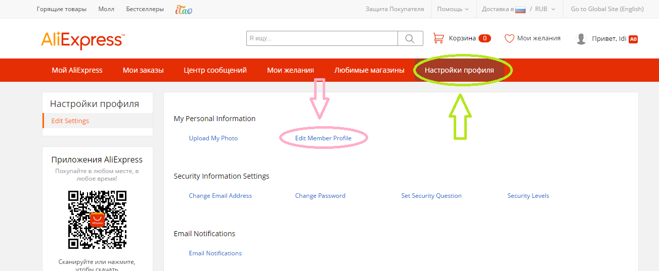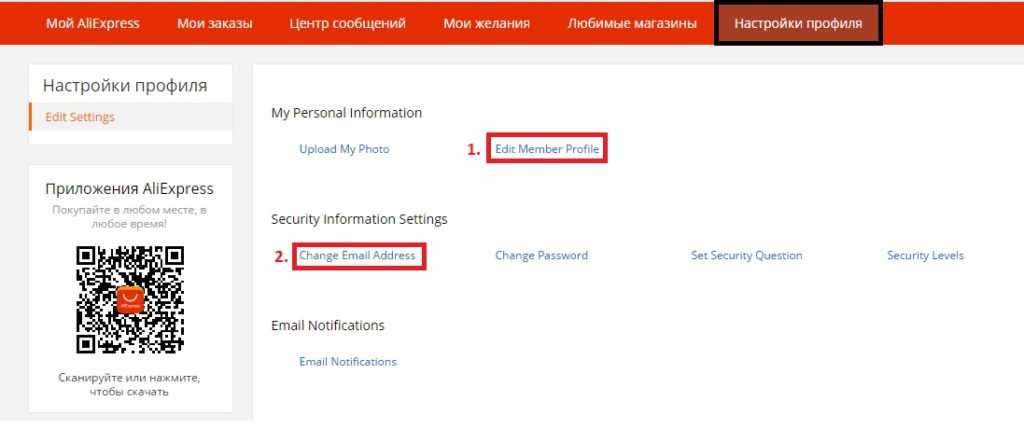 Как изменить адрес электронной почты в мобильном приложении Алиэкспресс?