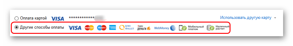 - Второй способ – выбрать во все том же пункте 3 на стадии оформления вариант «Другие способы оплаты». После этого можно продолжить оплату.